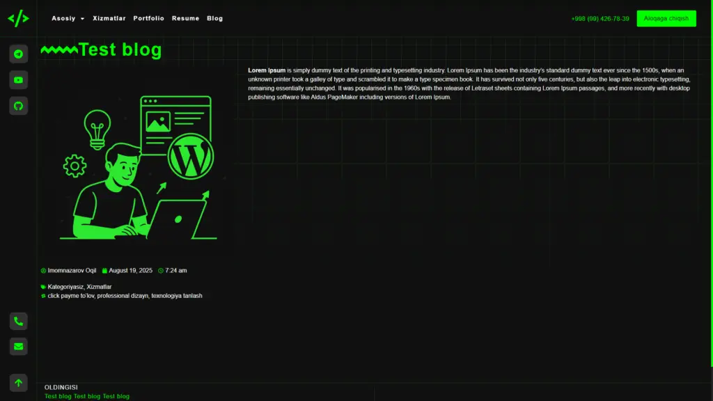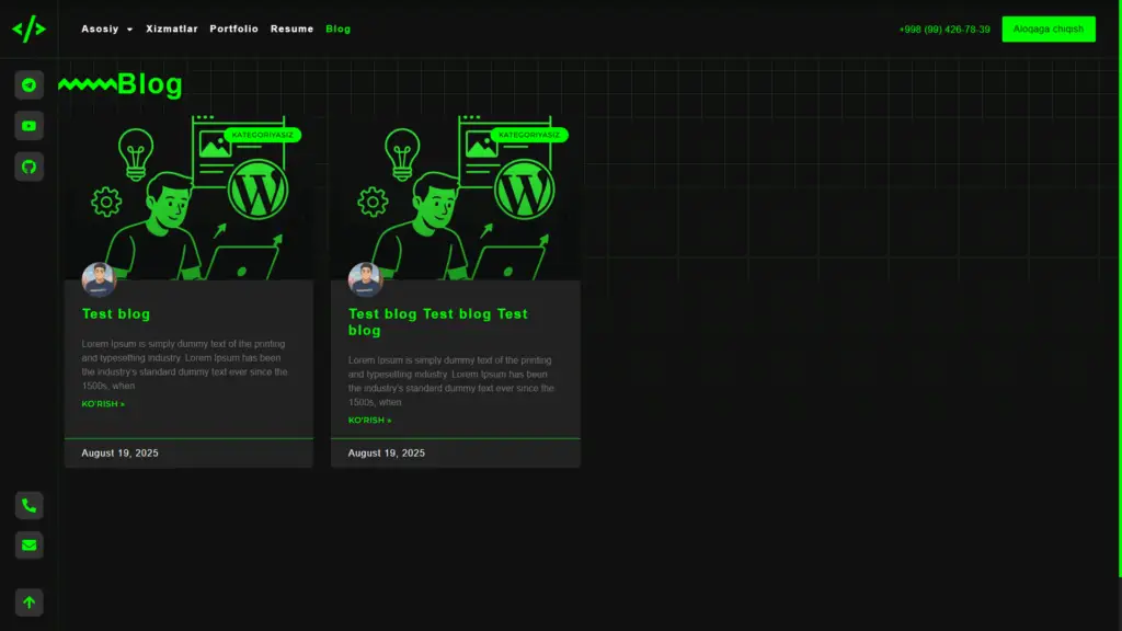 - Blog — web dasturlash va texnologiyalar bo‘yicha maqolalar.